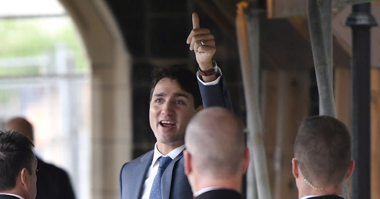 El primer ministro Justin Trudeau da el pulgar porque llega a la mañana de Parliament Hill después de una nueva tienda con México y la prensa canadiense de EE. UU. / Justin Tang por qué la fusión podría favorecer a Canadá