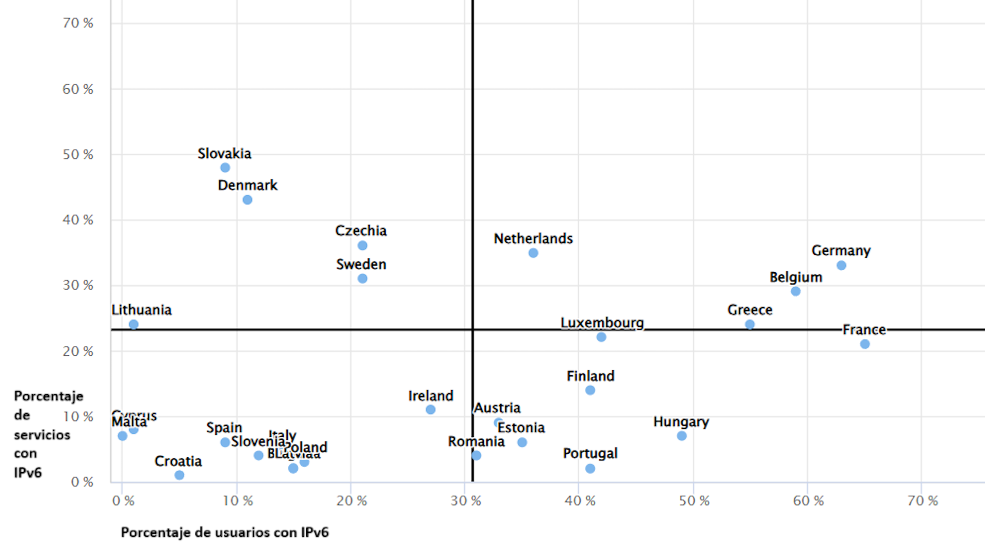 El gobierno español también podría apoyarlos promoviendo alguna iniciativa estructural, como la adopción de la última versión del Protocolo de Internet (IPv6). Esto ayudaría a mejorar el nivel de precisión al bloquear los dominios piratas. Actualmente, como se puede ver en la tabla, España está en línea con la adopción de IPv6.