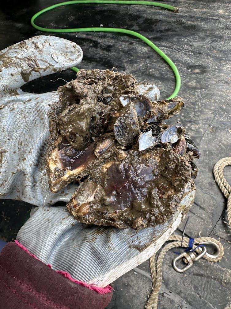 Muestras de gusanos planos en ostras muertas. Ricardo López Alonso, CC BI-SA