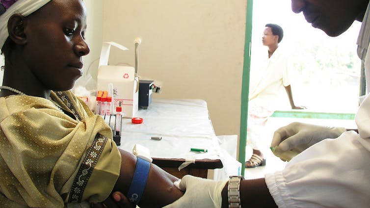 El paciente pasa la prueba de VIH. Arne Hoel / Banco Mundial
