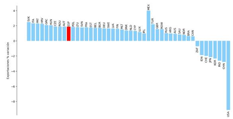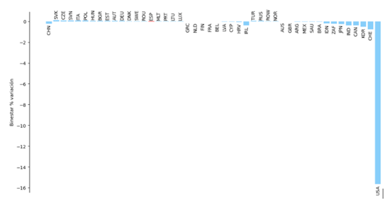 Impacto en la exportación estadounidense de política comercial (%) Fuente: elaboración propia