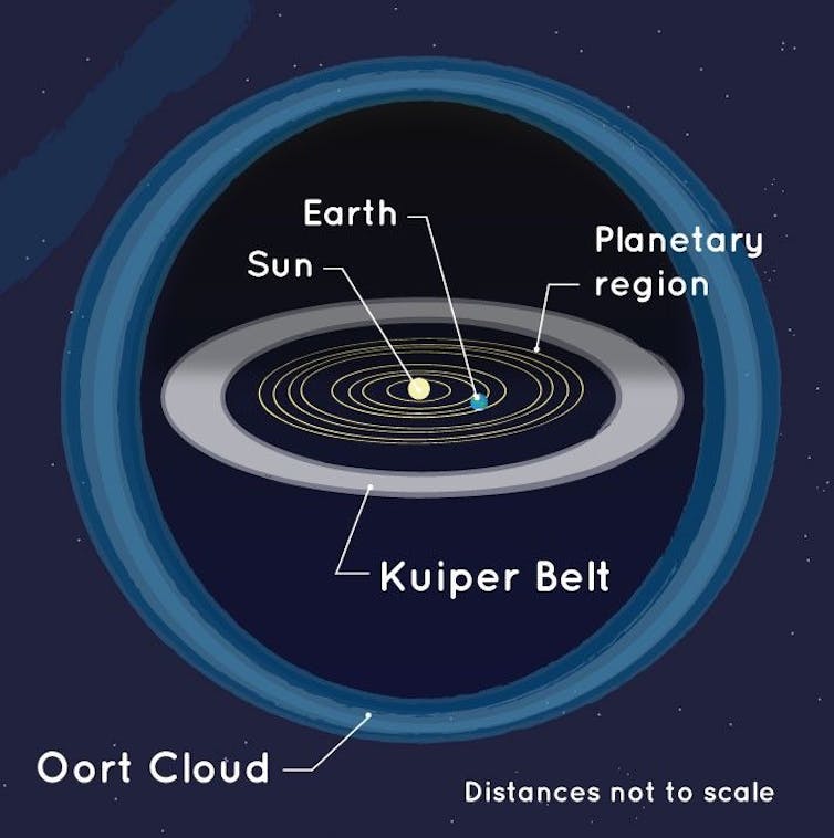 Y se encuentran en dos regiones remotas del sistema solar, que cubren unas 30 unidades astronómicas (y en su acrónimo en inglés, equivalente a la distancia promedio entre el sol y la tierra) a casi la luz de un año.