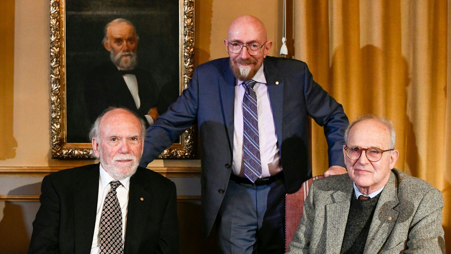 Ganadores del Premio Nobel 2017 años: de izquierda a derecha, Barri C. Barish, Kip S. Thorne y Rainer Weiss representados durante la conferencia de prensa Común en diciembre de 2017. En la Royal Suecia Academy of Stockholm Science. VJCT Public Media, CC