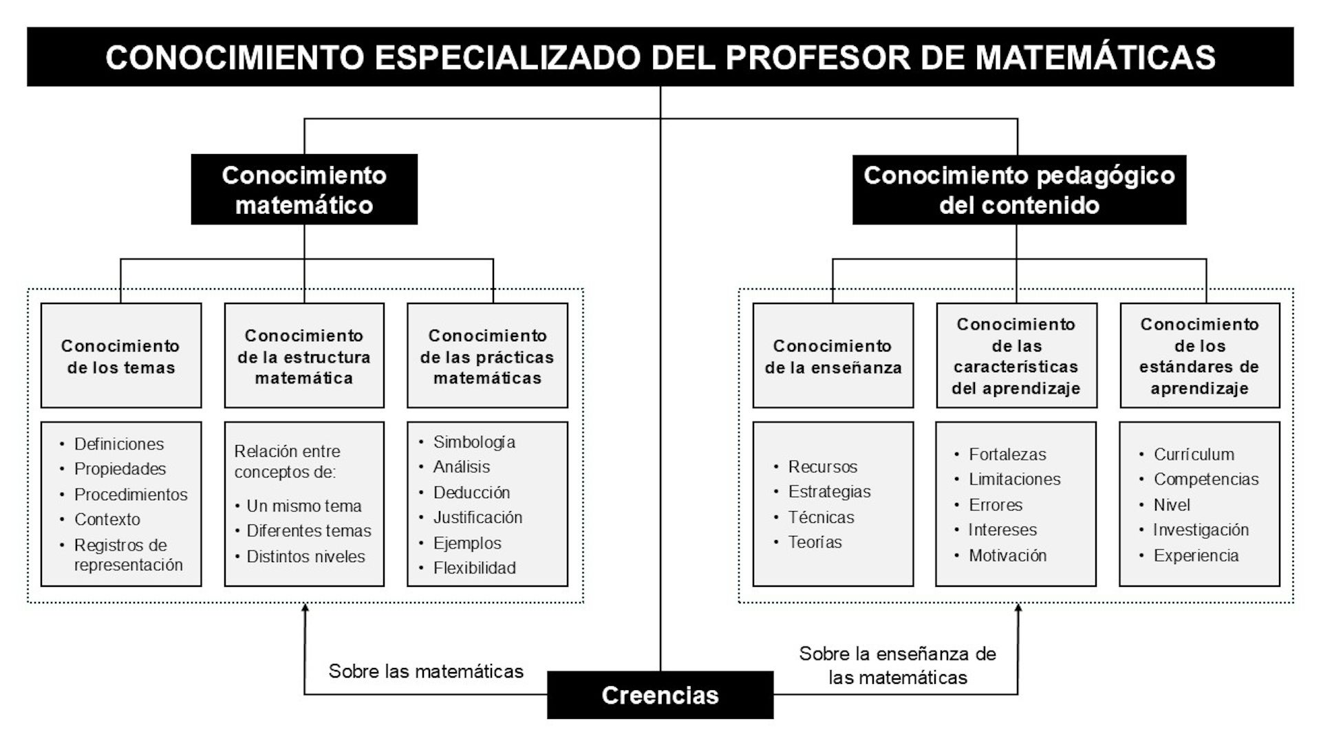 En los últimos años, se investigó mucho conocimiento sobre qué tipo de conocimiento debería estar enseñando adecuadamente las matemáticas. Uno de los modelos más famosos es conocido en el campo académico como "conocimiento especializado de maestros de matemáticas".