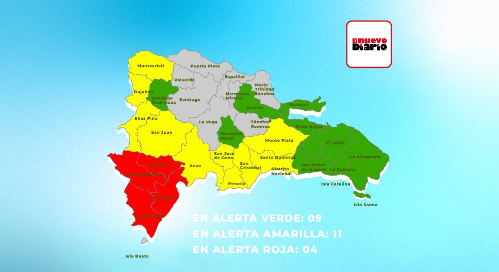 COE mantiene 4 provincias en alerta roja, incrementa a 11 las de alerta amarilla; hay 9 en verde