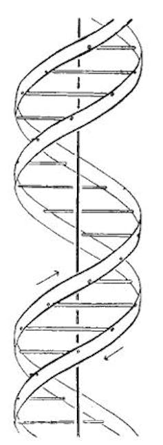 La estructura de doble hélice de la molécula de ADN fue descrita por James Watson y Francis Crick en Nature en 1953.