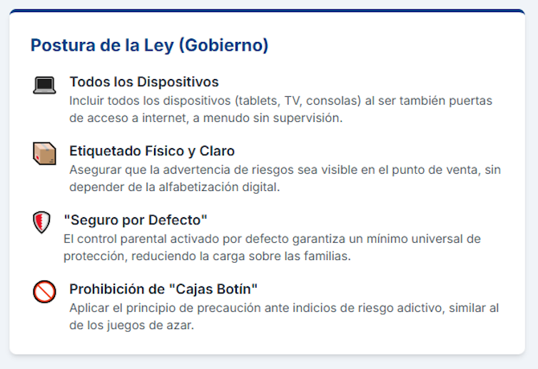 En segundo lugar, requiere la incorporación nativa de controles parentales. Todos los dispositivos deben estar equipados con un sistema que se activa por defecto en la configuración inicial. Este diseño pretende garantizar un mínimo universal de protección, de modo que –independientemente del nivel de alfabetización digital de cada familia– cada nuevo dispositivo tenga una barrera inicial que puedan configurar los adultos.