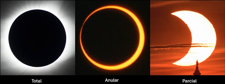 Pero ¿cuál es la diferencia entre un eclipse solar y un eclipse lunar? Los primeros ocurren cuando la Luna, que dibuja una elipse cuando orbita la Tierra, se interpone entre ésta y el Sol, lo que sólo ocurre durante la luna nueva. Este fenómeno puede ser parcial, total o anular (cuando la Luna está cerca de su apogeo).